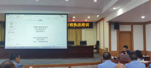 为深入贯彻落实总书记法治思想,全面提升执法人员的业务素质和执法水平,规范交通运输综合行政执法人员的执法行为,切实提升交通运输综合行政执法队伍综合素质。2023年8月4日上午,河南尚领律师事务所吴跃军律师受焦作市交通运输局邀请,在市交通运输局会议室为焦作市县区交通运输全体执法人员开展2023年综合行政执法培训会。![]() 图:培训现场 培训会以“案例讲法”的形式,结合经典案例与本地执法办案特点,重点就执法流程、执法实务中证据类型及方式的重点、难点、疑点问题作详细讲解和答疑交流,使参训培训执法人员,结合执法特点依法依规提升办案质量。 强化法律意识,深入学习相关法律规定。吴跃军律师以习近平法治思想为指导,首先结合《行政复议法》、《行政强制法》、《交通运输行政执法程序规定》等相关法律法规内容,针对交通运输行政执法的特点,帮助参训执法人员更好掌握交通运输执法业务的知识,从依法行政的角度提高执法办案人员办案能力。 ![]() 图:吴跃军律师 规范执法行为,以“案”指导,提升执法办案能力。针对近几年关于交通运输领域典型案例,吴跃军律师通过结合自身经验与参训执法办案人员开展交流,通过讨论推动了执法办案流程规范化。执法办案人员也结合自身经历,分享行政执法办案心得,针对执法规范性、执法队伍建设性等方面与吴跃军律师开展深入讨论,现场参训学习交流气氛浓厚,参训执法办案人员受益匪浅。同时,吴跃军律师针对本地区的执法案件,结合案例,就执法办案材料书写等方面做出实践性指导,有效提升了参训人员办案能力。 最后,焦作市交通运输管理局结合本次培训会,向市县区单位传达了近期各级会议精神,强调落实交通运输执法规范性,并对下一步工作做出安排部署。要求各部分持续加强法治工作责任意识,夯实执法队伍建设,提升执法业务能力,确保综合执法的各项工作顺利完成。 ![]() 图:培训现场 参训人员表示,通过参加本次培训,在熟悉掌握业务知识的同时,也发现了自身在执法办案中存在发现、解决问题能力不足,解决事件思路不清的情况。经过培训后,对今后执法办案起到切实有效的指导作用,更践行了习总书记的法治理念,依法行政的法治要求。河南尚领律师事务所吴跃军律师经过本次授课培训,切实提升了本市交通运输执法办案能力,为建设一支政治素质过硬、法治意识坚定、业务能力精湛的综合执法队伍奠定了良好的基础。 |
